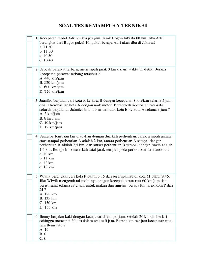 Juga soal pengetahuan umum khas psikotest seperti: Contoh psikotes tes psikotes kerja soal psikotes kerja psikologi kepribadian psikotes online contoh soal cpns soal tes psikotes. Surabaya ialah kambing, bogor ialah sapi, maka jakarta ialah? Sebut saja tes psikotes sma, tes psikotes cpns, . Seorang pengendara sepeda motor menempuh jarak 500 km dalam waktu 5 hari.